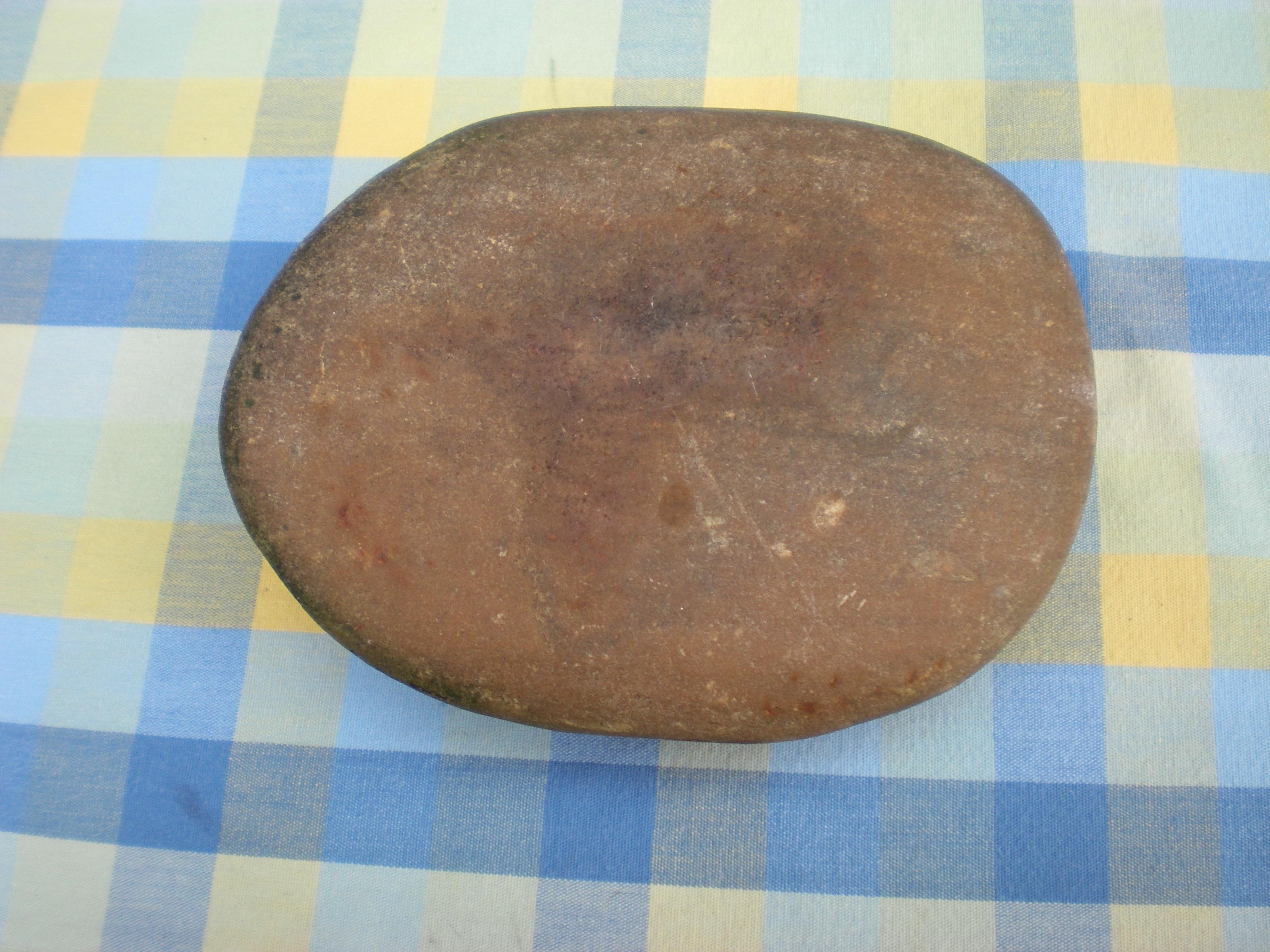 Der schmucklose, 20 cm breite und 3 - 4 cm starke Wärmestein stammt aus einer Steinmetzfamilie.