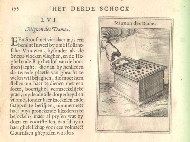 Da es über Wärmepfannen und Fußwärmer u.ä. Geräte, die mit Glut erwärmt wurden, in der Literatur keine verlässlichen Informationen gibt, verbleibt die Möglichkeit, Bilder von Malern zu durchsuchen.